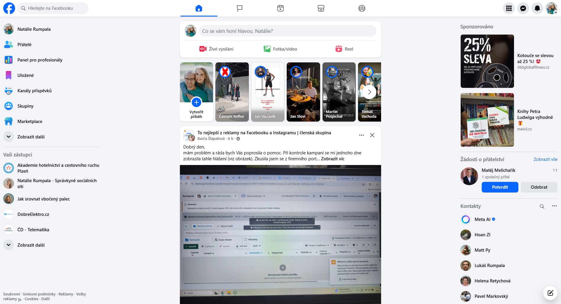 2. Vejdete normálně na Facebook (ať už do aplikace na mobilu, anebo na www.facebook.com na počítači).